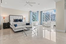 Description: Unit 3B at The Charles is a turn-key marina-front residence by Gwathmey Siegel Kaufman Architects, offering one of the greatest linear frontages on the Albany Mega Yacht Marinaâa distinction rarely found in newer developments. The kitchen, living room, and master suite are all oriented toward the water, with floor-to-ceiling glass doors capturing uninterrupted marina views and abundant natural light. An expansive covered terrace functions as a secondary outdoor living room, ideal for entertaining or quiet relaxation. Residents enjoy access to Albanyâs world-class amenities (membership not included), along with included covered parking.